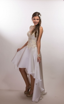 Ce concept ingénieux vous permet de profiter de deux robes en une seule création. Pendant la cérémonie ou la séance photo, vous brillerez dans une robe longue au style majestueux. Puis, au moment de la réception et de la danse, vous pourrez vous métamorphoser en une version plus légère et pratique, tout en restant splendide.