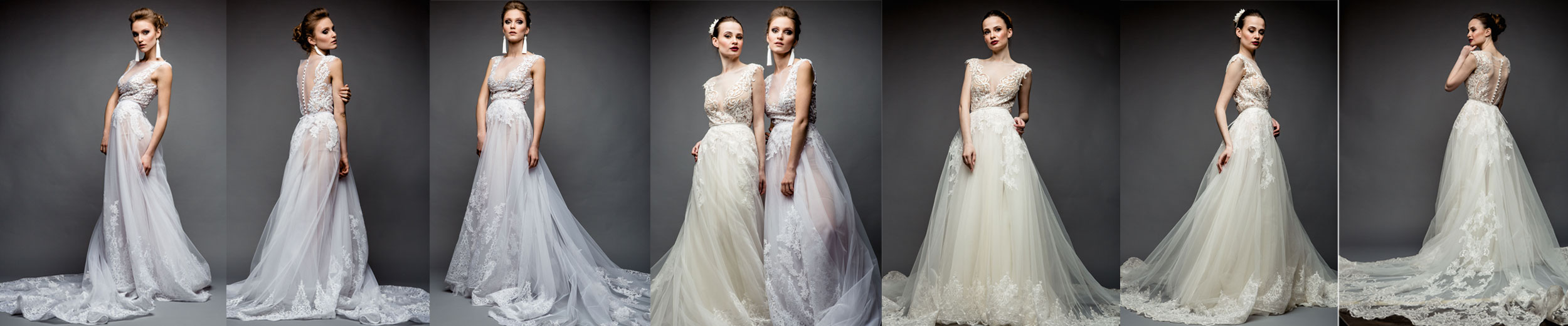 Comme je travaille exclusivement en sur-mesure, je propose toujours cette prestation à mes clientes. Mais si votre temps est limité ou si vous préférez vous appuyer sur un modèle existant, je mets également à votre disposition une sélection de robes de ma collection.
