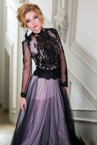d’un top en dentelle fait main, réalisé selon la technique des applications sur tulle, offrant un design unique grâce à la disposition délicate de la dentelle,