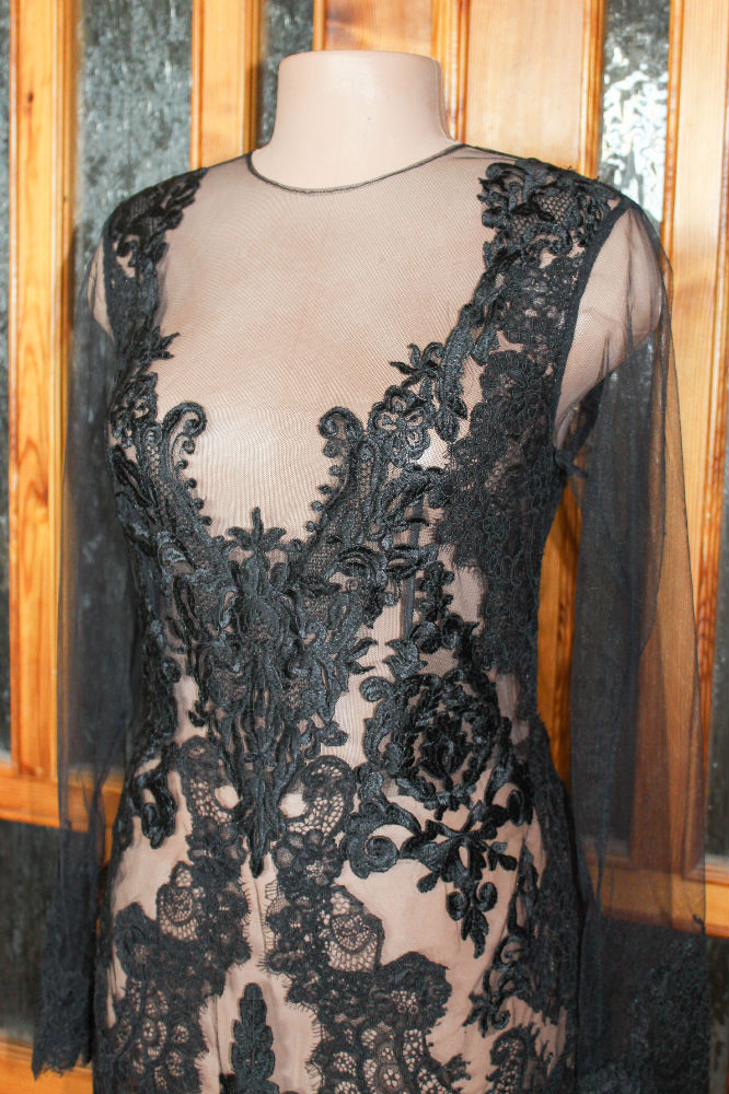 Cette robe en dentelle transparente, réalisée selon la technique d’applications de dentelle disposées de manière artistique sur du tulle, est une pièce exclusive et entièrement personnalisée. Chaque modèle créé par LILIYA ATELIER est unique : vous choisissez le type de dentelle, la couleur du tulle, la disposition des motifs et même les détails du design.