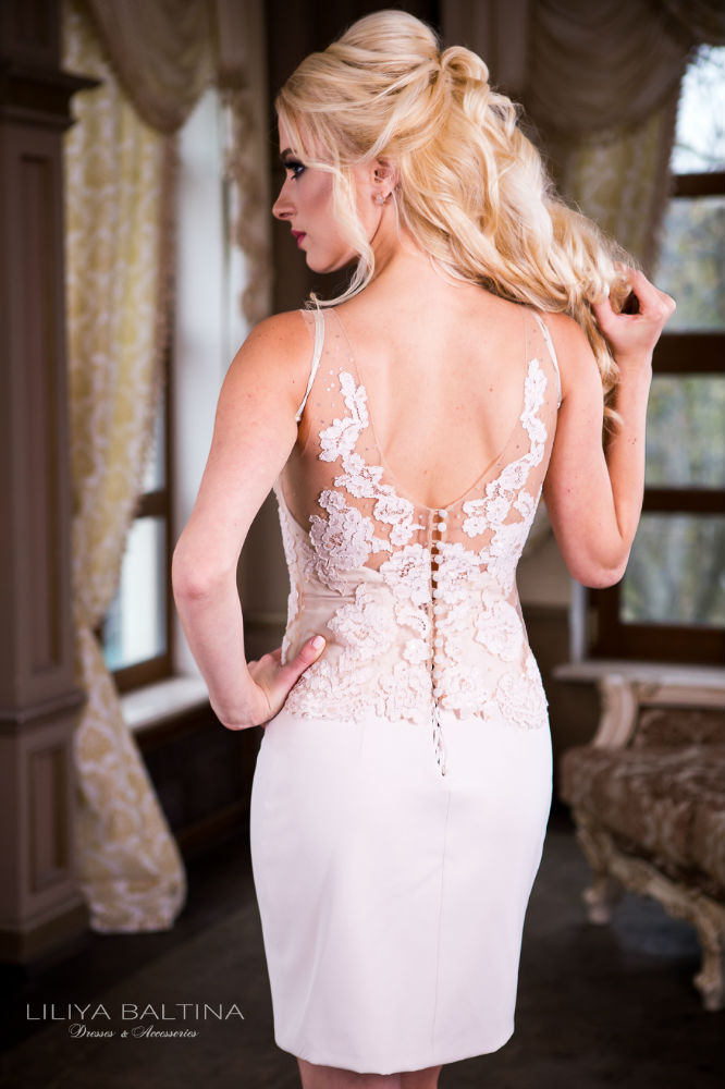 Sublimez votre tenue avec cette blouse en dentelle unique signée LILIYA ATELIER, réalisée dans une technique d’applications en dentelle sur tulle beige, offrant un effet peau nue raffiné et élégant. La blouse possède un décolleté subtil à l’avant et à l’arrière, et se ferme au dos par de petits boutons faits main, assurant un maintien parfait et un détail sophistiqué.