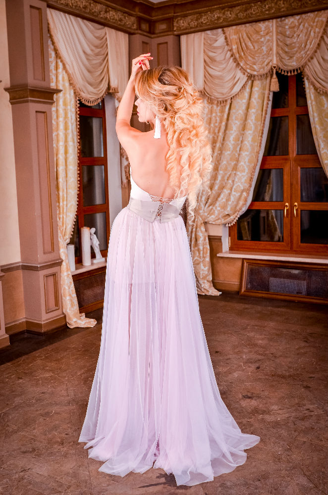 Pour souligner la taille et créer une silhouette encore plus gracieuse, vous pouvez compléter la robe par une ceinture-corset faite à la main (comme présentée sur les photos). Ce corset, avec son laçage au dos et son devant délicatement décoré, est une véritable pièce d’exception.