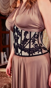 Je peux recréer ce corset dans la taille et les couleurs de votre choix, que ce soit pour le tissu de base ou pour les décorations. Je vous offre un large choix de dentelles, disponibles chez moi ou auprès de mes fournisseurs, afin de vous aider à créer l'accessoire de vos rêves sans aucun compromis.
