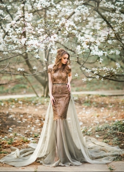 Grâce à ses différentes parties modulables, ce modèle peut être porté en version courte et moderne ou transformé en robe de soirée élégante et complète – idéale pour vos événements.