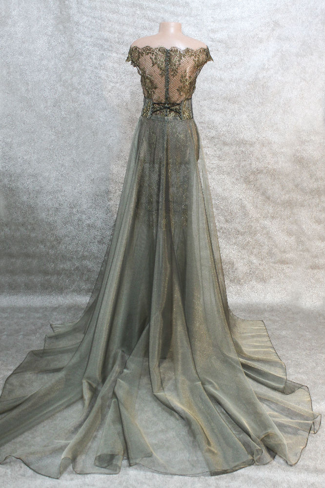Important : le modèle original présenté sur les photos est déjà vendu. Une reproduction peut être réalisée en fonction des dentelles disponibles au moment de la commande. Un choix de variantes vous sera proposé – il est donc indispensable de nous contacter pour en discuter.