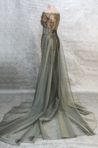 une seconde jupe fixée à la taille, formant une élégante demi-traîne.