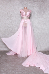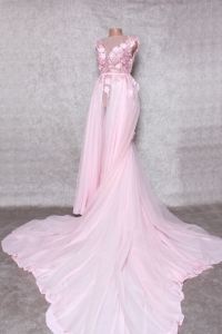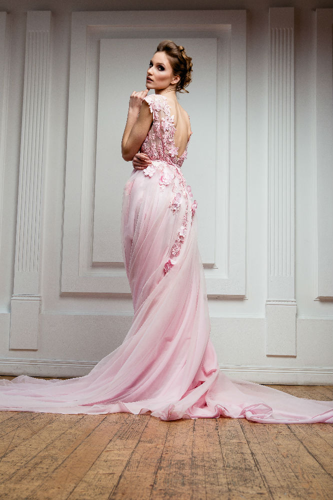 Cette création peut être portée comme une robe délicate et transparente pour une séance photo ou comme une véritable robe de soirée pour votre événement.
