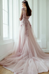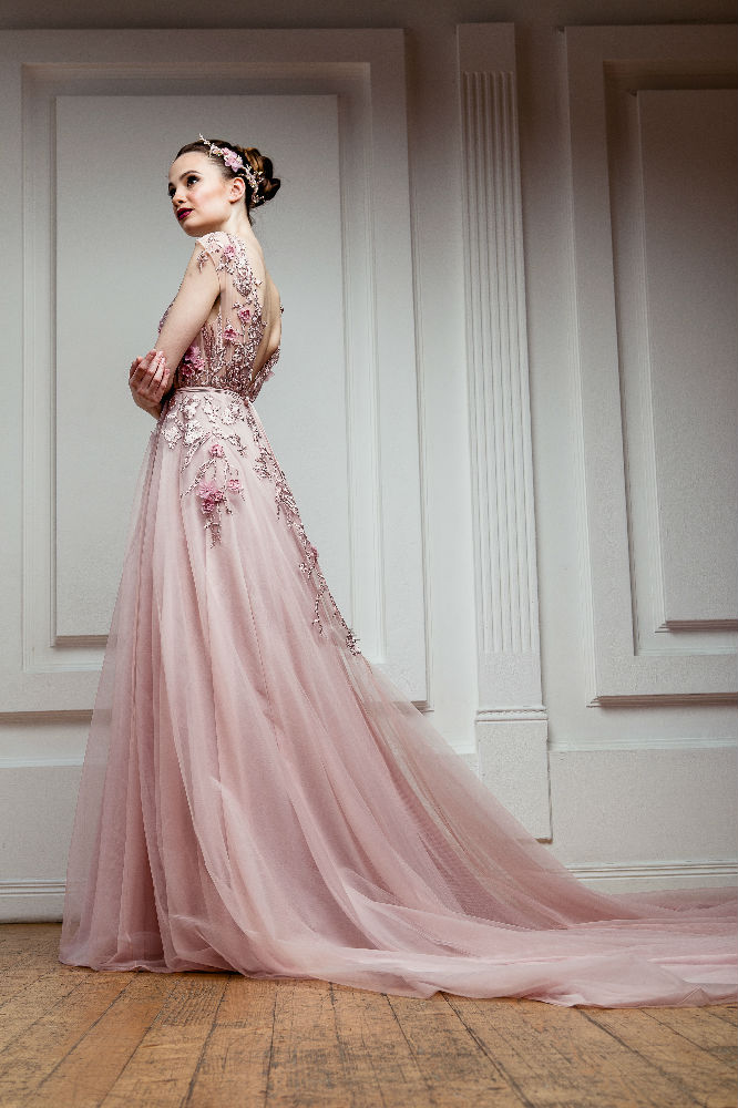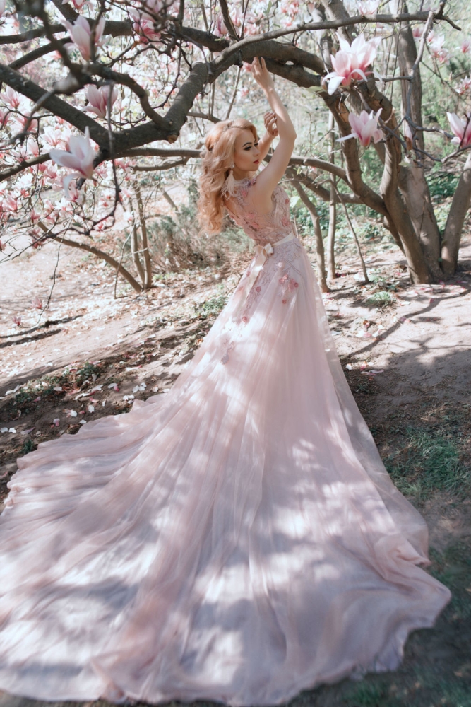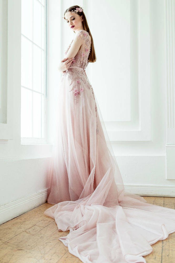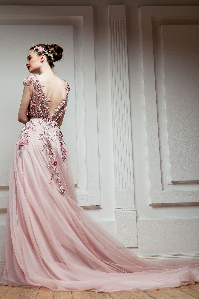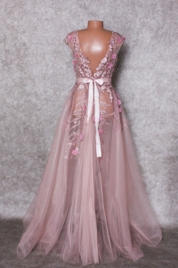 Cette création peut être portée comme une robe délicate et transparente pour une séance photo ou comme une véritable robe de soirée pour votre événement.