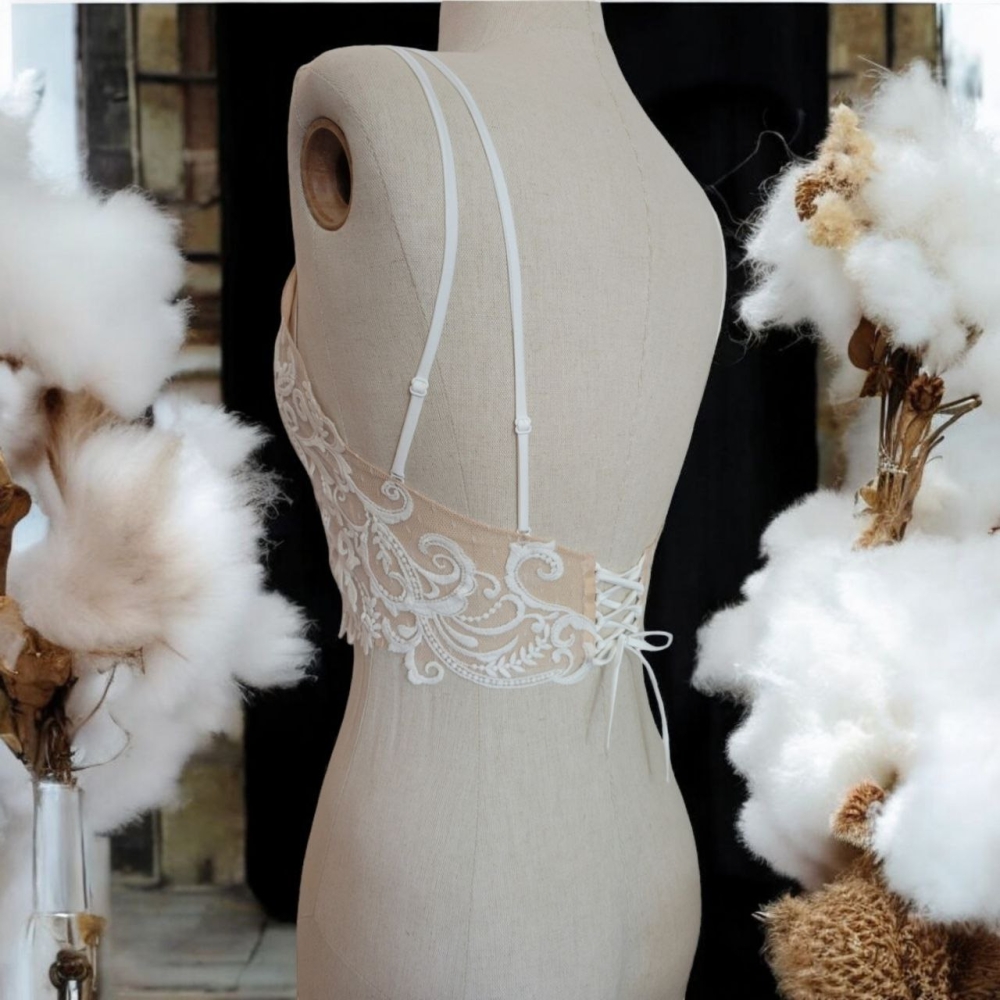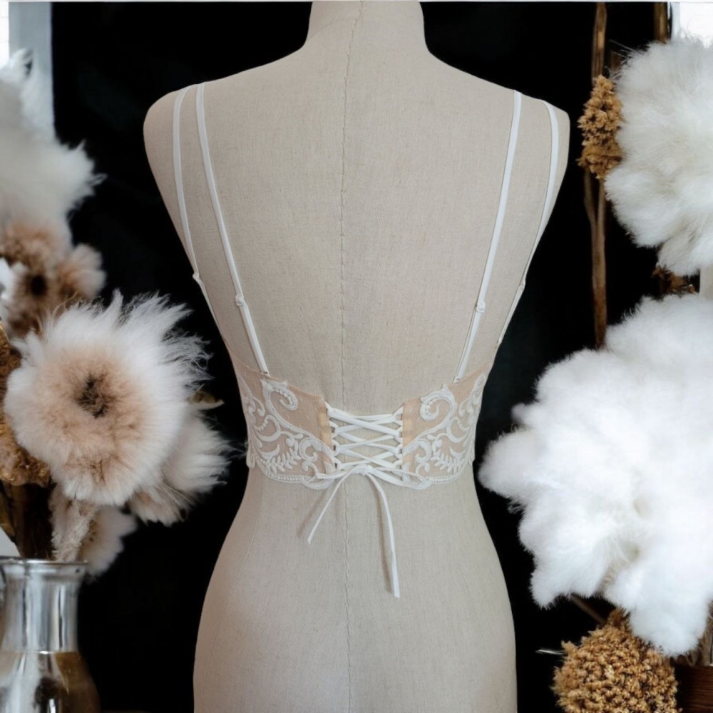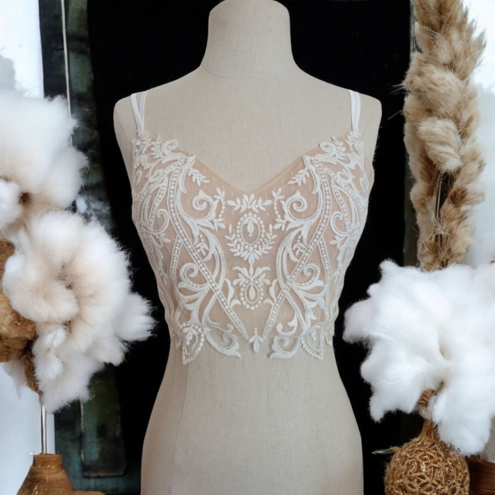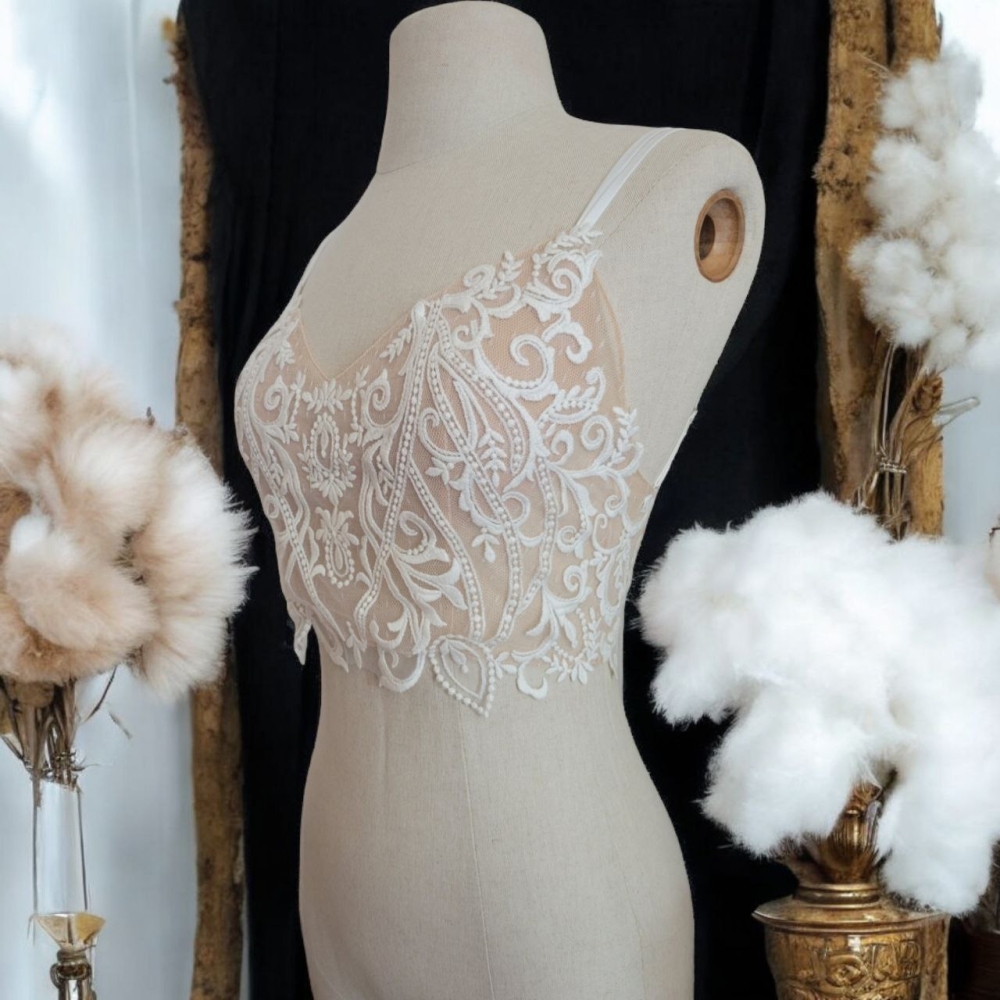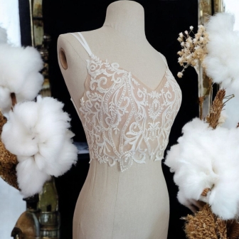 Crop top en dentelle et tulle – une création poétique signée LILIYA ATELIER