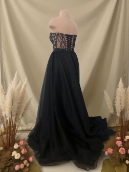Opter pour une robe de mariée noire, c’est faire preuve d’audace et d’élégance. Grâce à son format transformable, cette tenue peut être réinventée après le mariage : portez le corset séparément avec une jupe courte, une jupe ajustée ou même un pantalon noir classique pour créer des looks sophistiqués lors de vos futurs événements.