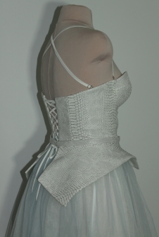 Le corset est doté d’une basque amovible à la taille, qui peut être portée de différentes manières :