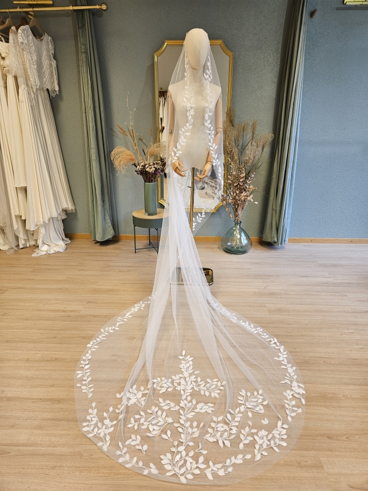 En tant que spécialiste de l’insta-couture, je propose également de concevoir une voile coordonnée à votre robe :