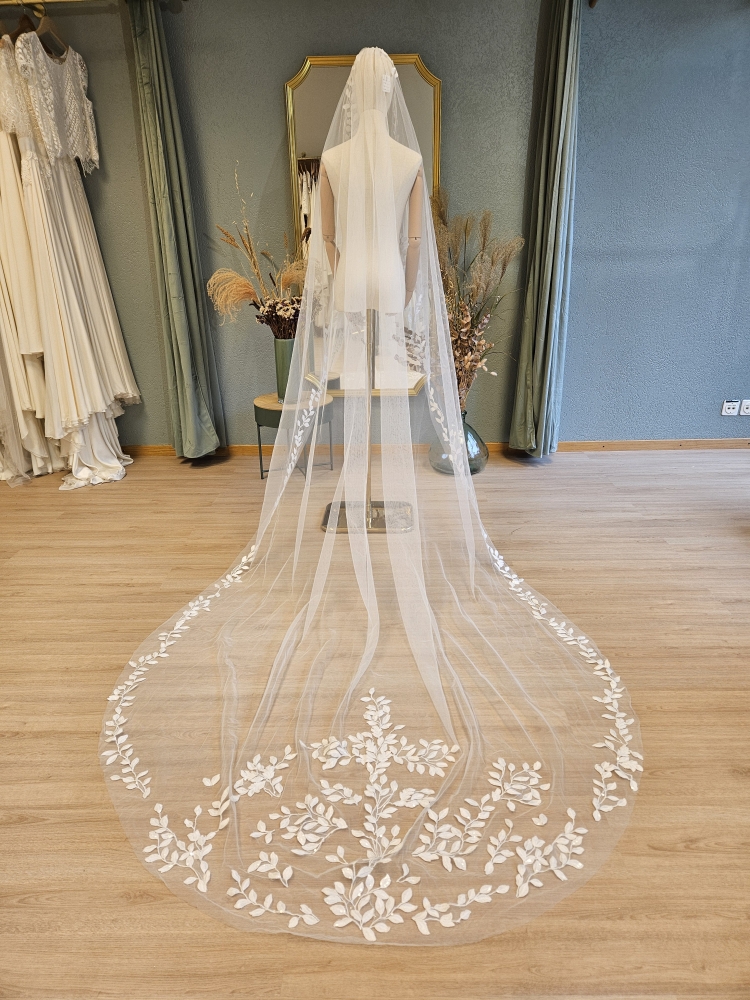Cette voile longue de 3 mètres est une création élégante signée Liliya Atelier, atelier spécialisé dans la confection sur mesure et la réalisation d’accessoires faits à la main. Forte de plus de huit ans d’expérience dans la couture à distance, j’accompagne chaque cliente avec un suivi professionnel et personnalisé.