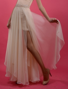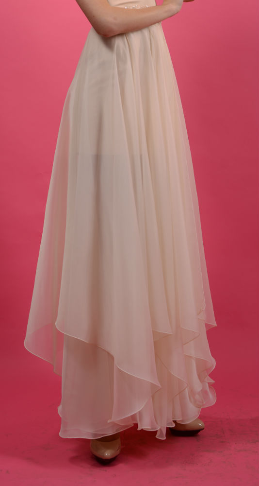 Raffinée et aérienne, cette jupe en mousseline semi-transparente sera un complément parfait à votre robe courte ou corset.