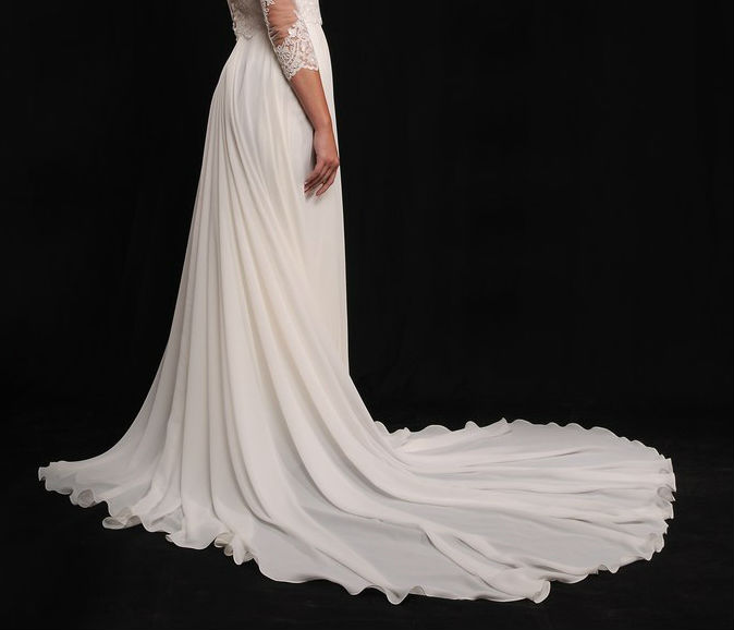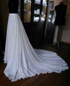 Jupe fluide en mousseline doublée de satin, avec traîne de 2 m. Création sur mesure selon vos mesures, taille et couleur souhaitées.