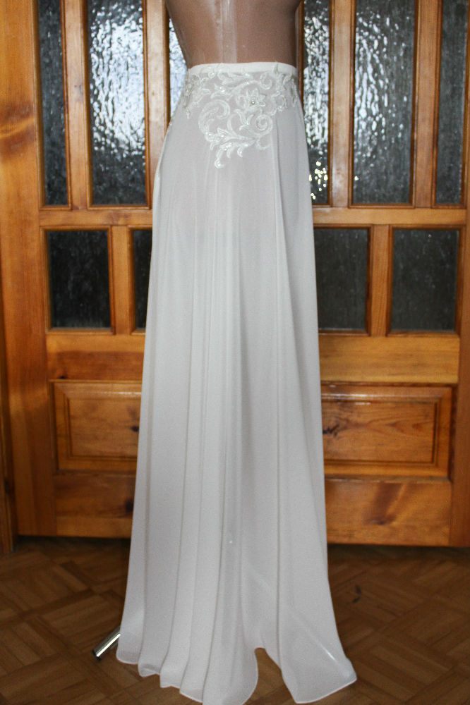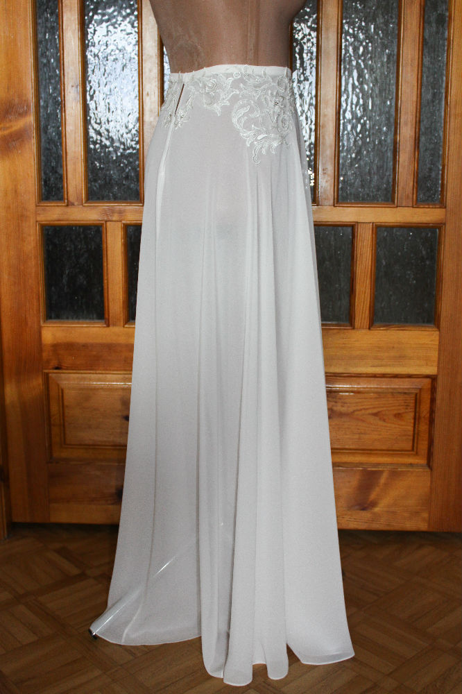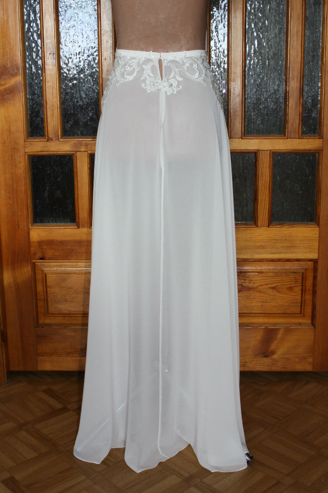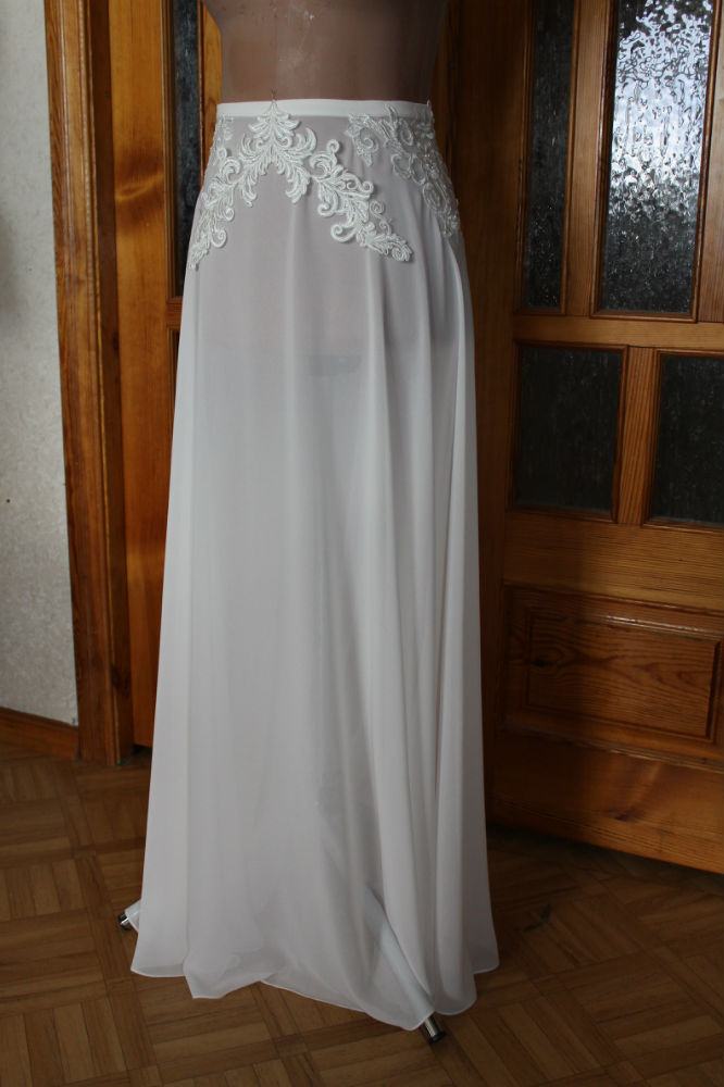 Cette jupe fluide en matière semi-transparente est une pièce raffinée pensée pour sublimer un corset ou une robe courte. Son tombé aérien et sa légèreté apportent mouvement et élégance à votre silhouette.