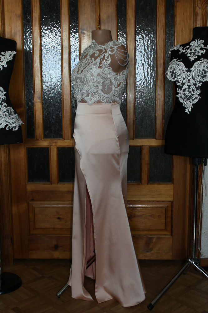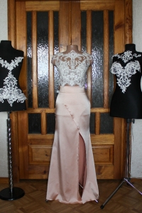 par une jupe courte, à porter à la place de la jupe longue en satin,