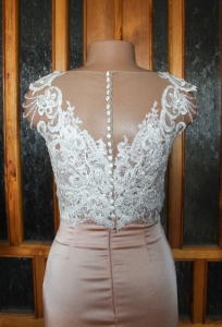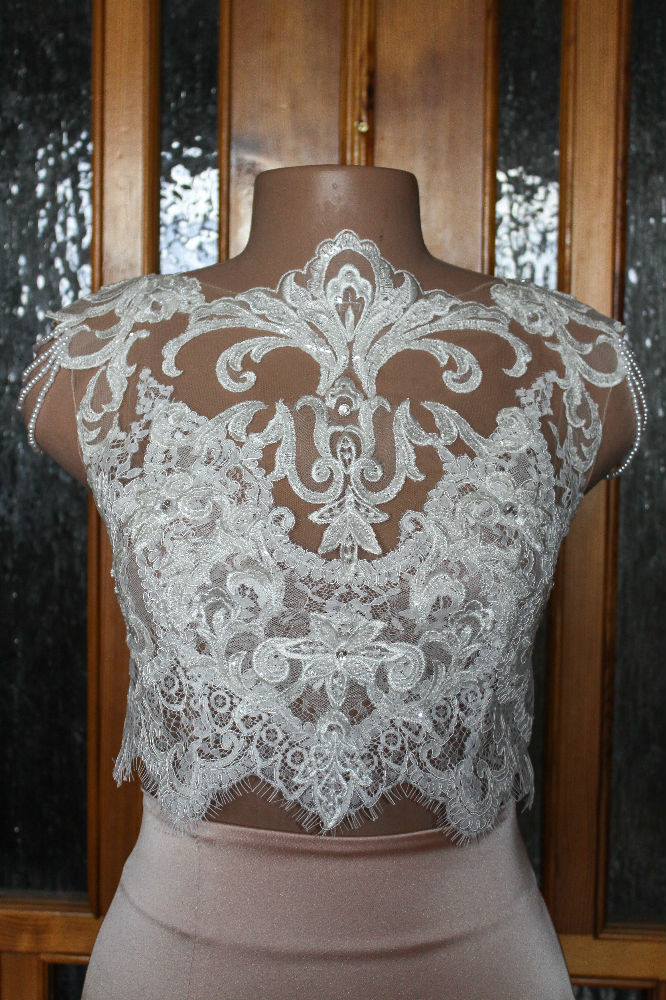 un crop-top au design exclusif, décoré de dentelle appliquée à la main,