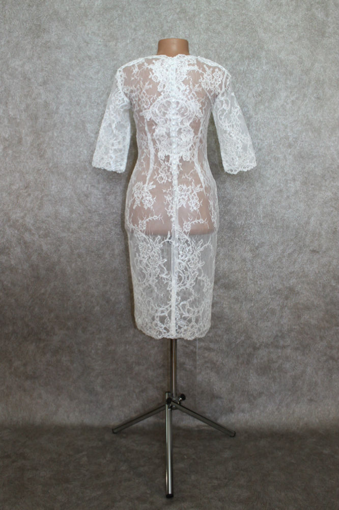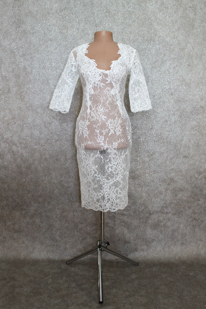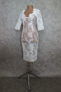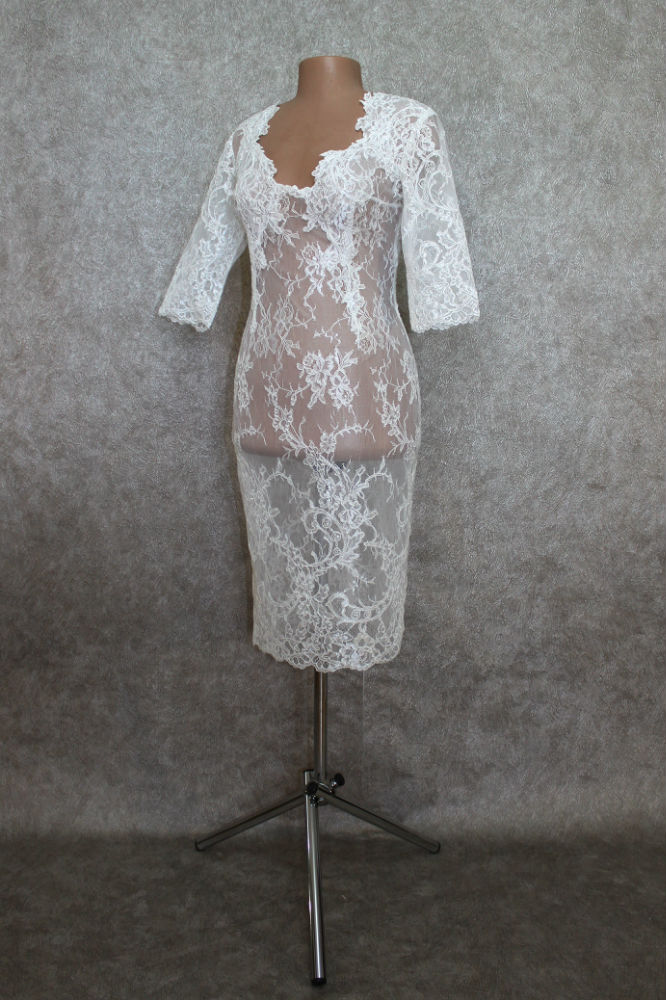 Cette robe de mariée courte incarne la délicatesse et la modernité.