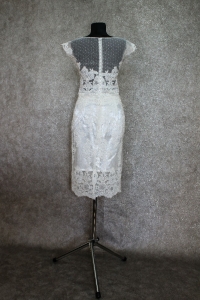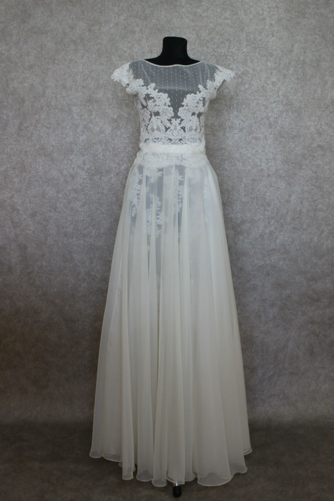 d’un top en dentelle fait main, réalisé selon la technique des applications sur tulle, offrant un design unique grâce à la disposition délicate de la dentelle,
