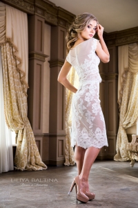 d’une sous-robe servant de base, représentée sur la photo par un ensemble en maille dense (top et jupe).