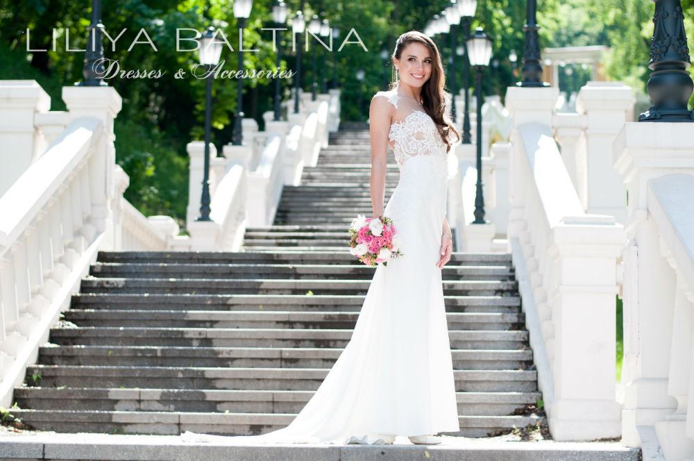 Cette robe a été pensée pour sublimer le dos, véritable œuvre d’art : les applications de dentelle disposées à la main créent un motif exclusif et captivant.