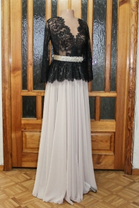 Cette blouse, réalisée précédemment en noir, a déjà trouvé preneuse. Cependant, il est possible de créer une copie exacte ou un nouveau modèle sur mesure selon vos souhaits et votre style.